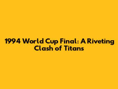 1994 World Cup Final: A Riveting Clash Of Titans