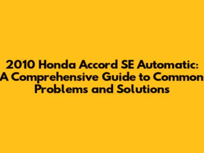 2010 Honda Accord SE Automatic: Common Issues & Solutions