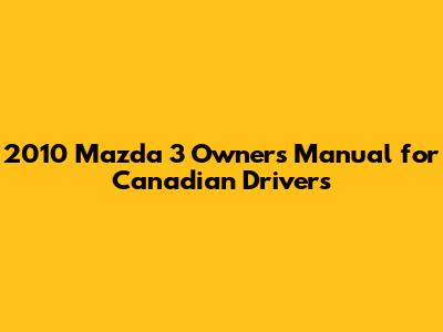 2010 Mazda 3 Owner's Manual For Canadian Drivers