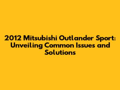 2012 Mitsubishi Outlander Sport: Common Issues & Solutions