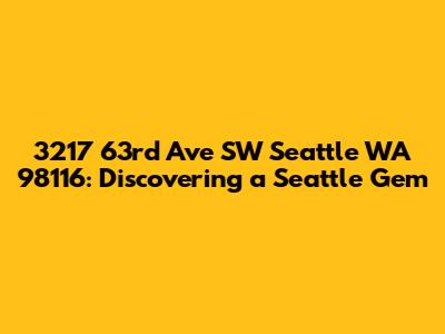 Hey guys! Let’s dive into everything about 3217 63rd Ave SW, Seattle, WA 98116. This address isn't just a set of numbers; it's a gateway to a vibrant neighborhood with unique characteristics and charm. We're going to explore what makes this location special, from its geographical setting to the community vibe and the amenities that make it a great place to live.