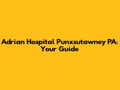Adrian Hospital Punxsutawney PA: Your Guide