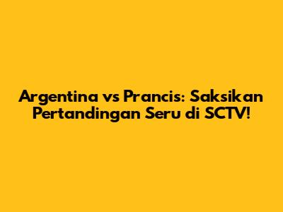 Argentina vs Prancis adalah pertandingan sepak bola yang sangat dinantikan oleh para penggemar di seluruh dunia. Pertemuan dua tim raksasa ini selalu menjanjikan pertarungan sengit dan aksi-aksi yang memukau. Dengan menonton langsung di SCTV, kalian bisa merasakan sensasi menonton yang lebih seru dan mendebarkan. Jangan lupa untuk mencatat jadwal tayang, mempersiapkan diri dengan camilan dan minuman favorit, serta mengajak teman-teman untuk nonton bareng. Siapkan diri kalian untuk menyaksikan pertandingan Argentina vs Prancis yang penuh dengan kejutan dan emosi! Dukung tim kesayangan kalian dan nikmati setiap momennya.