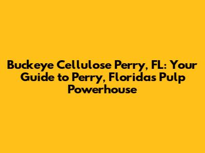 Buckeye Cellulose: Your Guide To Perry, Florida's Pulp Powerhouse