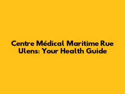 Centre Médical Maritime Rue Ulens: Your Health Guide