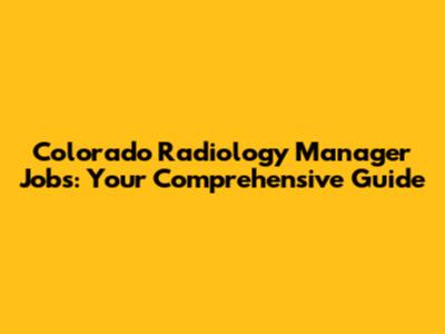Colorado Radiology Manager Jobs: Your Guide