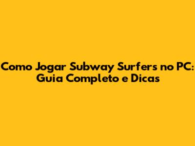 Como Jogar Subway Surfers No PC: Guia Completo E Dicas