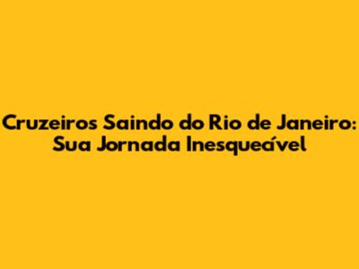 Cruzeiros Saindo Do Rio De Janeiro: Sua Jornada Inesquecível