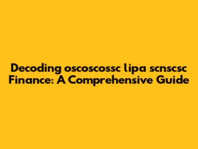 Decoding Oscoscossc Lipa Scnscsc Finance: A Comprehensive Guide