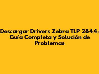 Descargar Drivers Zebra TLP 2844: Guía Completa Y Solución De Problemas