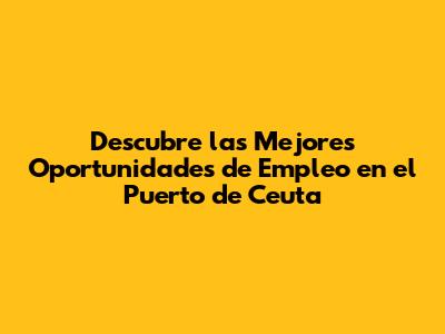 ¿Buscas trabajo en un entorno dinámico y lleno de oportunidades? El puerto de Ceuta podrÃa ser el lugar perfecto para ti. Con su posición estratégica y su constante actividad, el puerto ofrece una amplia gama de ofertas de empleo que podrÃan encajar con tus habilidades y experiencia. En este artÃculo, exploraremos las diversas oportunidades laborales disponibles, los requisitos necesarios, y cómo puedes postularte para encontrar el trabajo de tus sueños en el corazón de Ceuta.