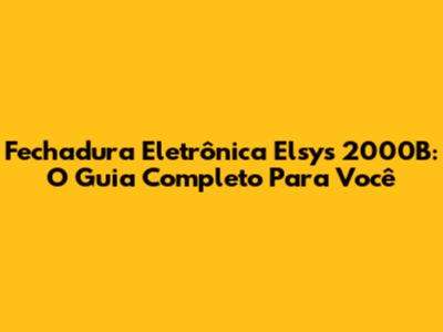 Parabéns! Agora você está bem informado sobre a fechadura eletrônica Elsys 2000B. Se você está pensando em comprar uma, agora sabe tudo o que precisa para tomar uma decisão. Se já tem uma, espero que este guia tenha sido útil para você. Se tiver alguma dúvida, deixe um comentário abaixo. Boa sorte com sua fechadura e aproveite a segurança e a praticidade que ela oferece! E lembre-se, segurança e praticidade andam juntas com a Elsys 2000B! Se precisar de mais informações, consulte o manual ou entre em contato com o suporte técnico da Elsys. Até a próxima!