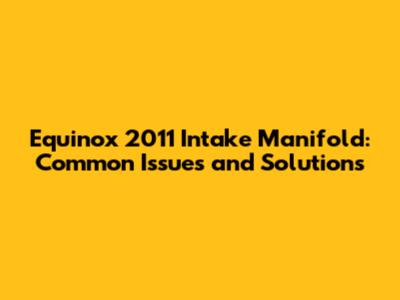 Equinox 2011 Intake Manifold: Common Issues And Solutions