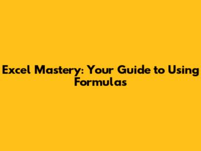 Excel Mastery: Your Guide To Using Formulas