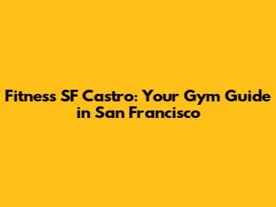 Hey everyone! Are you on the hunt for the perfect fitness spot in San Francisco's vibrant Castro district? Look no further! We're diving deep into Fitness SF Castro, giving you the lowdown on everything this gym has to offer. Whether you're a seasoned gym-goer or just starting your fitness journey, finding the right place can make all the difference. So, let's get into it!