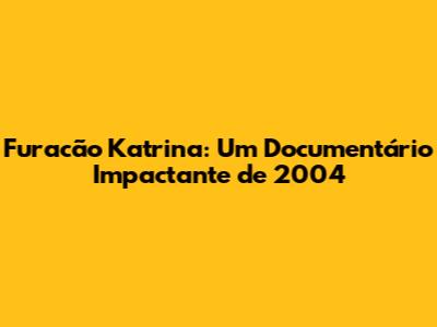 Furacão Katrina: Um Documentário Impactante De 2004