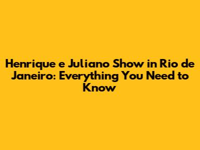 Henrique E Juliano In Rio: Show Details & More!