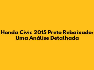 Honda Civic 2015 preto rebaixado: Fala, galera! Se você, assim como eu, é apaixonado por carros e adora um visual irado, com certeza já se pegou babando em um Honda Civic 2015 preto rebaixado. Esse modelo, que já é um clássico, ganha um charme extra quando recebe aquela suspensão esperta e encosta no chão. Mas, afinal, o que faz um Civic 2015 preto rebaixado ser tão cobiçado? E quais os cuidados e as modificações necessárias para deixar o seu carro com essa pegada? Bora desvendar tudo isso juntos!