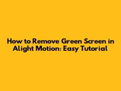 How To Remove Green Screen In Alight Motion: Easy Tutorial