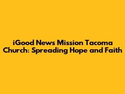 Hey guys! Let's dive into the heart of Tacoma and explore the iGood News Mission Church. This isn't just another church; it's a vibrant community with a powerful mission. The iGood News Mission is dedicated to spreading the gospel, fostering spiritual growth, and making a positive impact both locally and globally. Whether you're a long-time resident of Tacoma or just passing through, understanding the role and activities of this church can give you a glimpse into the city's diverse religious landscape and the profound ways faith can shape a community.