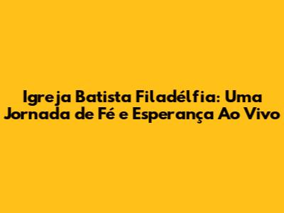 Igreja Batista Filadélfia: Louvor E Fé Ao Vivo Online