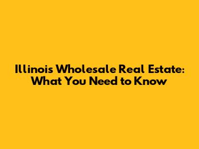 Illinois Wholesale Real Estate: What You Need To Know