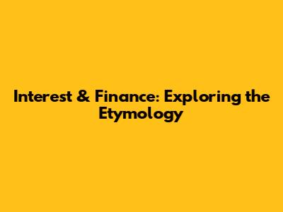 Interest & Finance: Exploring The Etymology