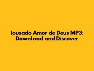 Are you looking to download the inspiring song "Iousado Amor de Deus" in MP3 format? You've come to the right place! This article will guide you through everything you need to know about this beautiful song, how to find it, and why it resonates with so many people. Let's dive in!