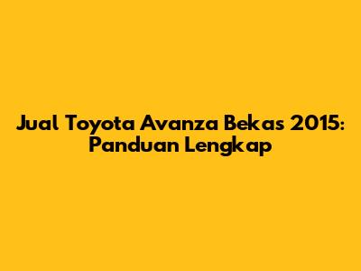 Jual Toyota Avanza Bekas 2015: Panduan Lengkap