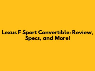 Lexus F Sport Convertible: Review, Specs, And More!
