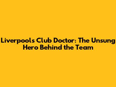 Liverpool's Club Doctor: The Unsung Hero Behind The Team