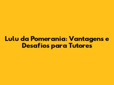 Lulu Da Pomerania: Vantagens E Desafios Para Tutores