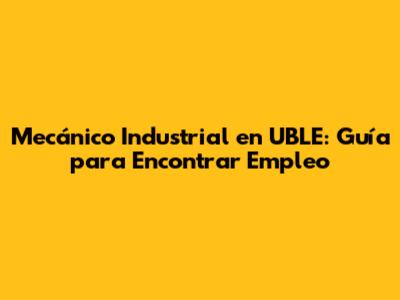 Mecánico Industrial En UBLE: Guía Para Encontrar Empleo
