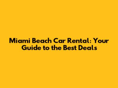 Miami Beach Car Rental: Get The Best Deals!