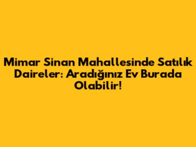 Mimar Sinan Mahallesi'nde Satılık Daire Rehberi