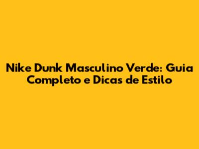 Nike Dunk masculino verde: Ah, os Nike Dunk! Esses tĂȘnis icĂŽnicos conquistaram o mundo da moda e do streetwear, e o modelo verde se destaca como uma escolha vibrante e cheia de personalidade. Se vocĂȘ estĂĄ pensando em adquirir um par ou jĂĄ possui um, este guia completo Ă© para vocĂȘ. Vamos explorar tudo sobre o Nike Dunk masculino verde, desde sua histĂłria e design atĂ© dicas de estilo e onde comprar.
