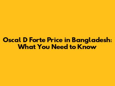 Oscal D Forte Price In Bangladesh: What You Need To Know