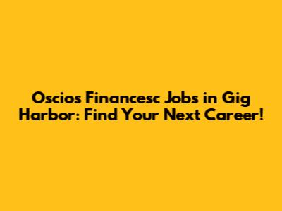 Oscios Financesc Jobs In Gig Harbor: Find Your Next Career!