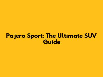 Pajero Sport: The Ultimate SUV Guide