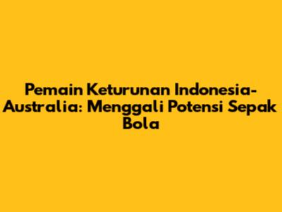 Selamat datang, guys! Pernahkah kalian bertanya-tanya tentang pemain sepak bola berdarah Indonesia yang bersinar di kancah Australia? Nah, artikel ini bakal mengupas tuntas tentang pemain keturunan Indonesia-Australia, menyelami profil mereka, perjalanan karier yang menarik, serta kontribusi mereka dalam dunia sepak bola. Kita akan membahas bagaimana mereka menggabungkan warisan Indonesia dengan budaya sepak bola Australia, menciptakan perpaduan unik yang patut kita banggakan. Jadi, siap-siap untuk mengenal lebih dekat para pemain berbakat ini dan bagaimana mereka dapat memberikan dampak positif bagi sepak bola Indonesia.