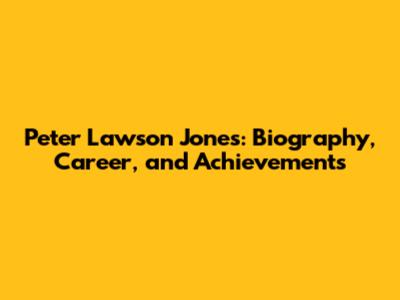 Peter Lawson Jones: Biography, Career, And Achievements