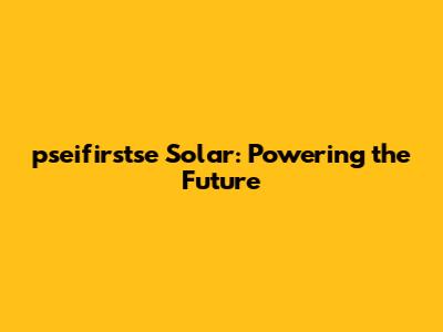 Pseifirstse Solar: Powering The Future