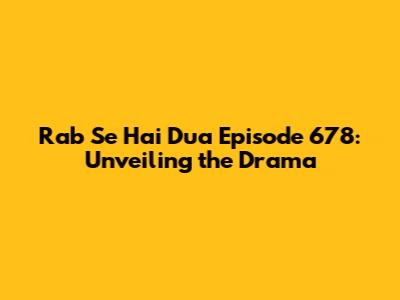 Hey there, drama enthusiasts! Are you ready for a deep dive into Rab Se Hai Dua Episode 678? If you're anything like me, you've been on the edge of your seat, waiting to see what new twists and turns our favorite characters will face. So, grab your snacks, settle in, and let's unravel all the juicy details from this latest installment. We'll explore the main plot points, the emotional rollercoaster moments, and the burning questions that will undoubtedly keep you hooked until the next episode. Get ready, because this episode of Rab Se Hai Dua is packed with intensity, surprise revelations, and enough suspense to keep you guessing. Let's dive in, shall we?