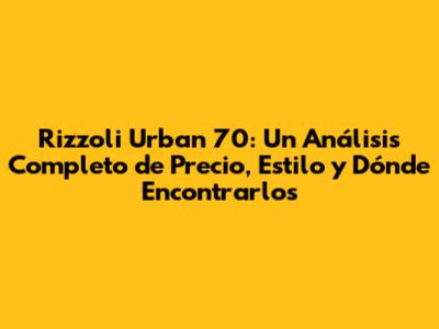 ¿Dónde Comprar los Rizzoli Urban 70? Tiendas y Opciones Disponibles