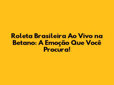 Roleta Brasileira Ao Vivo Na Betano: A Emoção Que Você Procura!
