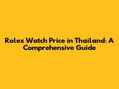 Rolex Watch Price In Thailand: A Comprehensive Guide