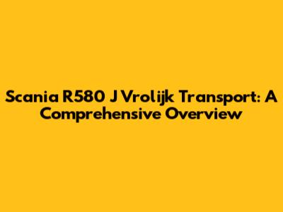 Scania R580 J Vrolijk Transport: A Comprehensive Overview