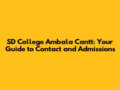 SD College Ambala Cantt: Contact Information And Admissions Guide