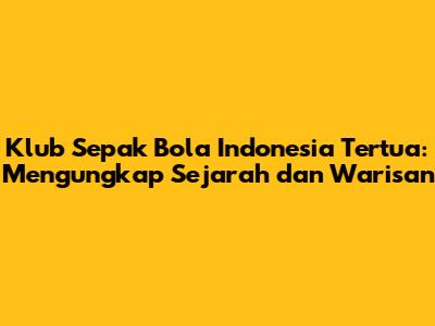 Beberapa klub sepak bola Indonesia tertua memiliki sejarah yang sangat panjang dan kaya. Mereka telah melalui berbagai fase perkembangan, mulai dari masa kolonial hingga era profesional. Berikut adalah beberapa di antaranya: