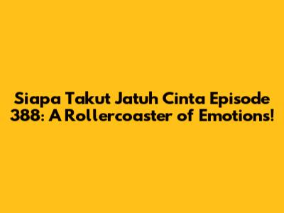 Siapa Takut Jatuh Cinta Episode 388: A Rollercoaster Of Emotions!
